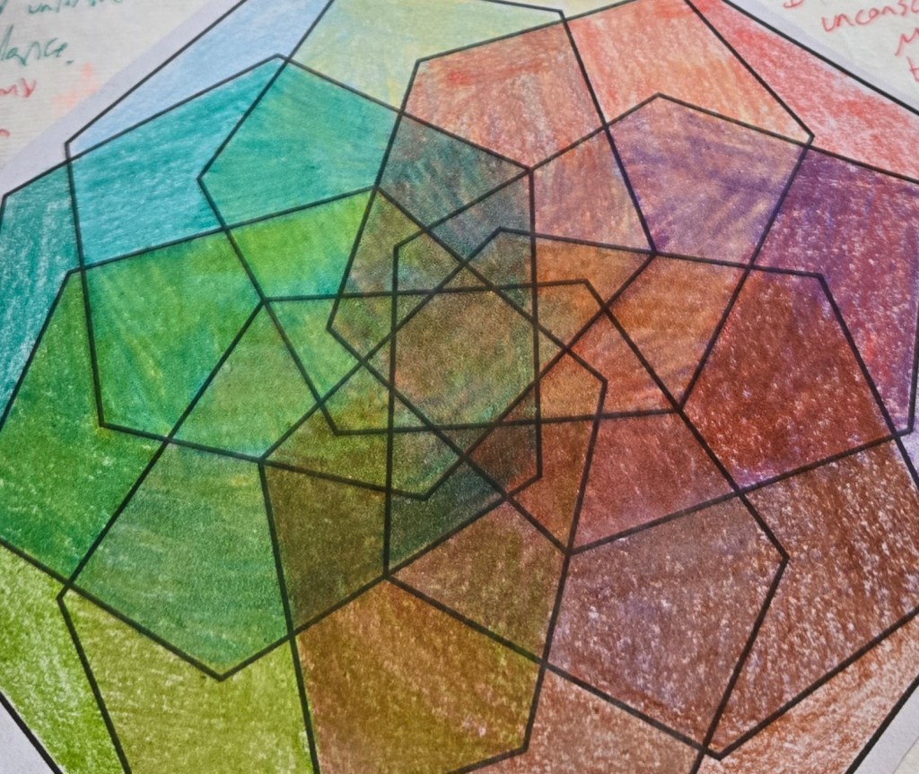 The 6-pointed star in Judaism also contains within it a hexagon, which is the 2-dimensional representation of a 3-dimensional cube.