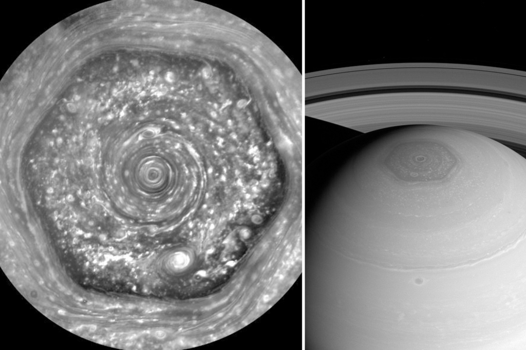 Are you not very spiritual or religious? I spent much of my life very impressed with modern science. Let’s look to our solar system and observe the 6th planet from the Sun, Saturn. Right now there is a storm on Saturn, and it is shaped like a – Hexagon? The 2-dimensional representation of a 3-dimensional cube…